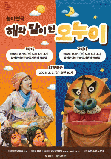 °ø¿¬Àº 2¿ù 14Àϰú 21ÀÏ, °¢°¢ ¿ÀÈÄ 1½Ã¿Í 4½Ã, ´Þ¼º±º¿©¼º¹®Èº¹Áö¼¾ÅÍ ±¹ÈȦ¿¡¼ ÃÑ 4ȸ ÁøÇàµÇ¸ç, °ø¿¬ ½Ã°£Àº ¾à 55ºÐÀÌ´Ù. °ü¶÷ ´ë»óÀº 36°³¿ù ÀÌ»óÀÌ¸ç ¸ðµç ȸÂ÷´Â ¹«·á·Î °ü¶÷ °¡´ÉÇÏ´Ù.