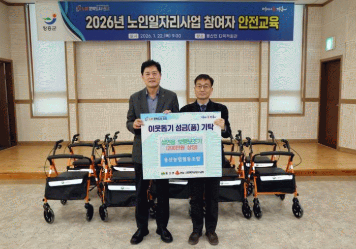 [´º½ºÅë ±è±¤¿ ±âÀÚ]ÀåÈï ¿ë»ê³ó¾÷Çùµ¿Á¶ÇÕÀº 22ÀÏ ¿ë»ê¸é Áö¿ª»çȸº¸ÀåÇùÀÇü¿¡ Áö¿ª ³» °Åµ¿ÀÌ ºÒÆíÇÑ ¾î¸£½ÅµéÀ» À§ÇÑ ¼ºÀÎ¿ë º¸ÇຸÁ¶±â(200¸¸ ¿ø »ó´ç)¸¦ ±âŹÇß´Ù.