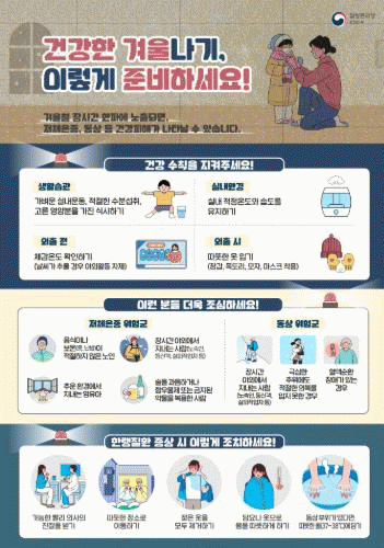 °í·ÉÀÚ¿Í ¸¸¼ºÁúȯÀÚ´Â °Ü¿ïö ÃßÀ§¿¡ Ãë¾àÇÑ ¸¸Å, ±â¿ÂÀÌ ³·Àº ³¯¿¡´Â ¹«¸®ÇÑ ¿ÜÃâÀ» ÇÇÇϰí ü¿Â À¯Áö¿¡ °¢º°È÷ ½Å°æ ½á¾ß ÇÑ´Ù.
