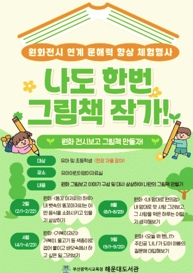 [´º½ºÅë °û¸íÈÆ ±âÀÚ]ºÎ»ê±¤¿ª½Ã¸³ÇØ¿î´ëµµ¼°ü(°üÀå ³ëÀå¼®)Àº ¿À´Â 2¿ùºÎÅÍ 9¿ù±îÁö µµ¼°ü º»°ü À¯¾Æ¾î¸°ÀÌ¿µ¾îÀÚ·á½Ç¿¡¼ À¯¾Æ ¹× ÃʵîÇлýÀ» ´ë»óÀ¸·Î ¿øÈ Àü½Ã ¿¬°è üÇè ÇÁ·Î±×·¥ ¡®³ªµµ Çѹø ±×¸²Ã¥ ÀÛ°¡!¡¯¸¦ ¿î¿µÇÑ´Ù.