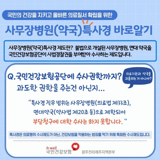 [´º½ºÅë ±è±¤¿ ±âÀÚ] ±¹¹Î°Ç°º¸Çè°ø´Ü ±¤ÁÖÀü¶óÁ¦ÁÖÁö¿ªº»ºÎ´Â °ø´ÜÀÌ µµÀÔÇÏ´Â »ç¹«À庴¿ø(¾à±¹)Ư»ç°æ Á¦µµ¿¡ ´ëÇÑ ±¹¹ÎµéÀÇ ±Ã±ÝÁõÀ» ¾Ë±â ½±°Ô ¼³¸íÇÑ Ä«µå´º½º 5Á¾À» Á¦ÀÛÇÏ¿© ÃÑ 5ÁÖ¿¡ °ÅÃÄ °Ô½ÃµÇ°í ÀÖ´Ù.