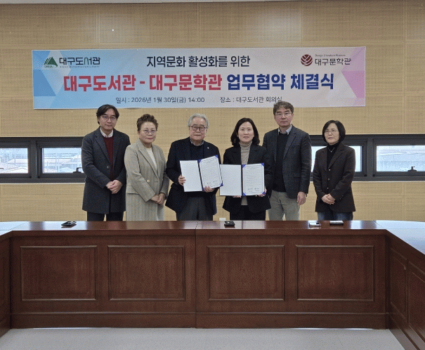 [´º½ºÅë ¾È»óµ· ±âÀÚ] ´ë±¸µµ¼°ü°ú ´ë±¸¹®ÇаüÀº ½Ã¹ÎÀ» À§ÇÑ µ¶¼¹®È ºÐ¾ß Çù·ÂÀ» °ÈÇÏ°í »óÈ£ ¹ßÀüÀ» µµ¸ðÇϱâ À§ÇØ 1¿ù 30ÀÏ ¿ÀÈÄ 2½Ã, ´ë±¸µµ¼°ü ȸÀǽǿ¡¼ ¾÷¹«Çù¾àÀ» ü°áÇß´Ù.