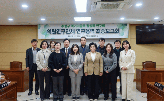[´º½ºÅë ¾È»óµ· ±âÀÚ]¼ö¼º±¸ÀÇȸ ÀÇ¿ø¿¬±¸´ÜüÀÎ ¡®¼ö¼º±¸ ¸Ô°Å¸®°ñ¸ñ Ȱ¼ºÈ ¿¬±¸È¸¡¯´Â Áö³ 28ÀÏ ÀÇȸ 2Ãþ ȸÀǽǿ¡¼ '¼ö¼º±¸ ¸Ô°Å¸®°ñ¸ñ Ȱ¼ºÈ ¸ðµ¨ ¸¶·Ã'À» ÁÖÁ¦·Î ÇÑ ¿¬±¸¿ë¿ª ÃÖÁ¾º¸°íȸ¸¦ °³ÃÖÇß´Ù.