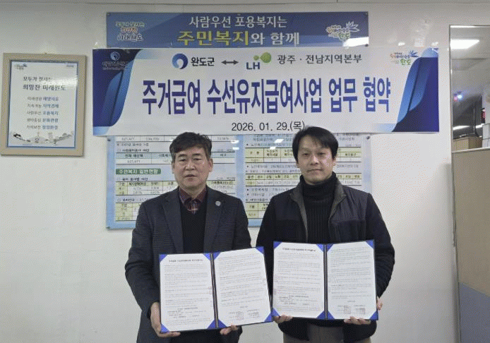 [´º½ºÅë ÃÖ¿ë¼ö ±âÀÚ]¿Ïµµ±ºÀº Áö³ 29ÀÏ LH(Çѱ¹ÅäÁöÁÖÅðø»ç ±¤ÁÖÀü³²Áö¿ªº»ºÎ)¿Í ÇÔ²² ÁÖ°Å ±Þ¿© ¼ö±ÞÀÚ °¡±¸ÀÇ Áְźñ ºÎ´ãÀ» ´ú¾îÁÖ±â À§ÇÑ ¾÷¹« Çù¾àÀ» ü°áÇß´Ù.