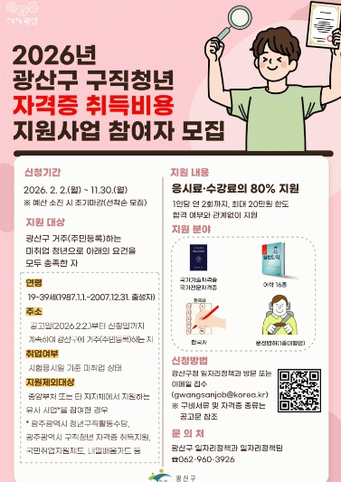 [´º½ºÅë ±è±¤¿ ±âÀÚ]±¤ÁÖ ±¤»ê±¸°¡ Ãë¾÷À» ÁغñÇϴ û³âÀÇ ÀÚ°ÝÁõ Ãëµæºñ¿ë Áö¿øÀ» ¿ÃÇØ ÃÖ´ë 20¸¸ ¿øÀ¸·Î È®´ëÇÑ´Ù.
