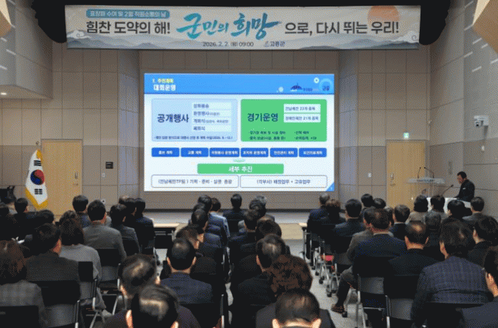 [´º½ºÅë ±è±¤¿ ±âÀÚ]°íÈﱺÀÌ 2027³â Àü¶ó³²µµÃ¼À°´ëȸ °³ÃÖ¸¦ ¾ÕµÎ°í Áö³ 2ÀÏ ±ºÃ» ¿ìÁÖȦ¿¡¼ Àü Á÷¿øÀ» ´ë»óÀ¸·Î 2027³â Àü³²Ã¼Àü ±âº» ¹æÇâ°ú ÃßÁø Àü·«À» °øÀ¯ÇÏ¸ç º»°ÝÀûÀÎ Áغñ¿¡ µ¹ÀÔÇß´Ù.