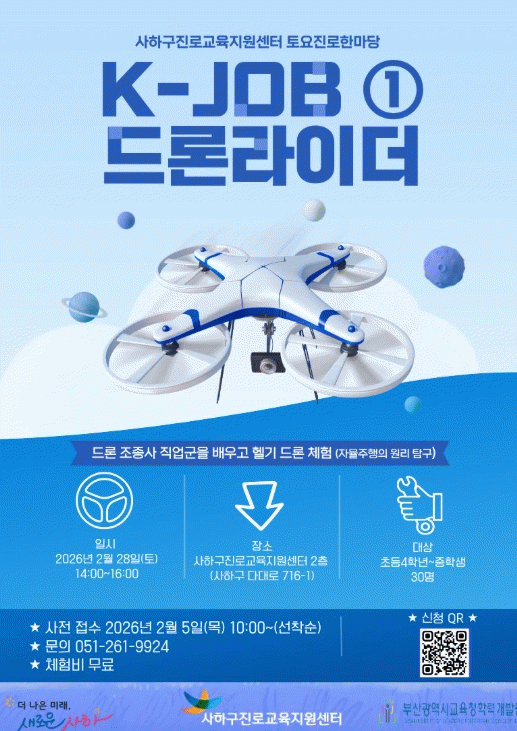 À̹ø ÇÁ·Î±×·¥Àº K-JOB µå·Ð ¶óÀÌ´õ Á÷¾÷±º¿¡ ´ëÇØ ¾Ë¾Æº¸°í, Çï±â µå·ÐÀ» Ȱ¿ëÇÑ ÀÚÀ²ÁÖÇà ¿ø¸®¸¦ üÇ衤ޱ¸ÇØ º¸´Â ½Ã°£À¸·Î 2¿ù 28ÀÏ Åä¿äÀÏ ¿ÀÈÄ 2½ÃºÎÅÍ »çÇϱ¸Áø·Î±³À°Áö¿ø¼¾ÅÍ 2Ãþ¿¡¼ ÁøÇàµÈ´Ù.