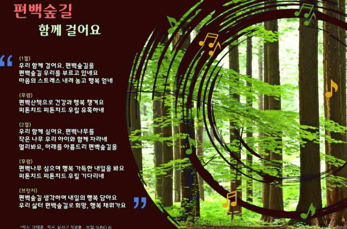 ³ë·¡ 'Æí¹é½£±æ ÇÔ²² °É¾î¿ä'´Â ¡®¿ì¸® ÇÔ²² °É¾î¿ä Æí¹é½£±æÀ»¡¯, ¡®Æí¹é³ª¹« ¿ì¸® ¾ÆÀÌ¿Í ÇÔ²² ÀÚ¶ó³×¡¯¶ó´Â °¡»ç¸¦ ÅëÇØ ±¸¹ÎÀÌ ÇÔ²² °È°í, ½É°í, Ű¿ö°¡´Â °øµ¿Ã¼ÀÇ ¹Ì·¡¸¦ µû¶æÇÏ°Ô Ç¥ÇöÇß´Ù.
