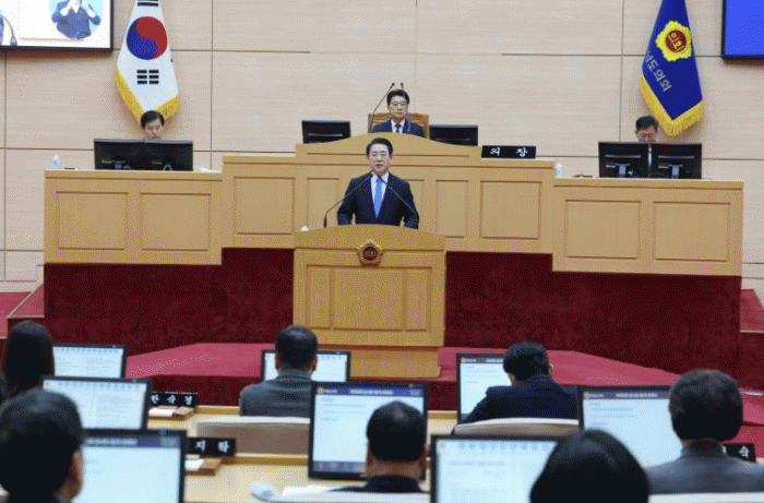 Àü¶ó³²µµÀÇȸ Á¦396ȸ ÀÓ½Ãȸ 2Â÷ º»È¸ÀÇ »çÁø-±è¿µ·Ï Àü¶ó³²µµÁö»ç°¡ 4ÀÏ Àü³²µµÀÇȸ º»È¸ÀÇÀå¿¡¼ ¿¸° Á¦396ȸ ÀÓ½Ãȸ 2Â÷ º»È¸ÀÇ¿¡¼ ¡®Àü³²¡¤±¤ÁÖ ÇàÁ¤ÅëÇÕ¿¡ ´ëÇÑ ÀǰßûÃëÀÇ °Ç¡¯¿¡ ´ëÇÑ Á¦¾È¼³¸íÀ» Çϰí ÀÖ´Ù.