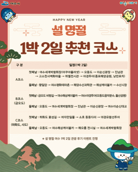 [´º½ºÅë ±è±¤¿ ±âÀÚ]¿©¼ö½Ã°¡ ¼³ ¸íÀý ¿¬ÈÞ¸¦ ¸Â¾Æ °¡Á· ´ÜÀ§ °ü±¤°´°ú ±Í¼º°´À» ´ë»óÀ¸·Î ´ëÇ¥ °ü±¤Áö¸¦ ¿¬°èÇÑ Ã¼·ùÇü 1¹Ú 2ÀÏ ÄÚ½º¸¦ È«º¸Çϰí À̺¥Æ®¸¦ ÁøÇàÇÑ´Ù.