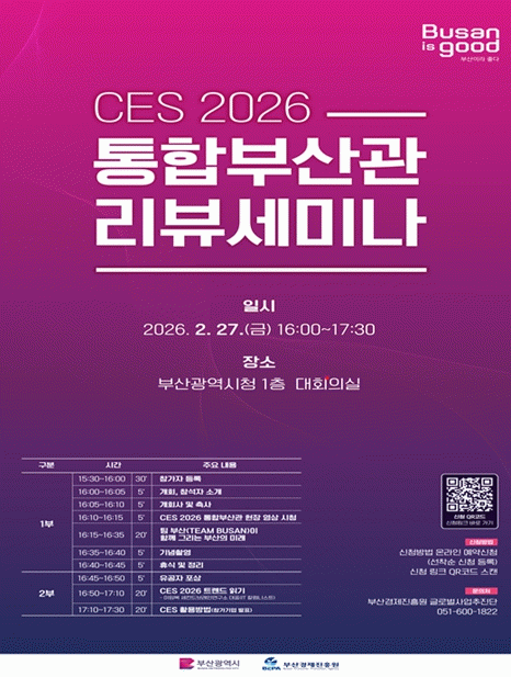 [´º½ºÅë °û¸íÈÆ ±âÀÚ] ºÎ»ê½Ã´Â ¿À´Ã(27ÀÏ) ¿ÀÈÄ 4½Ã ½Ãû ´ëȸÀǽǿ¡¼ 'CES 2026 ÅëÇպλê°ü' ¸®ºä ¼¼¹Ì³ª¸¦ °³ÃÖÇÑ´Ù°í ¹àÇû´Ù.