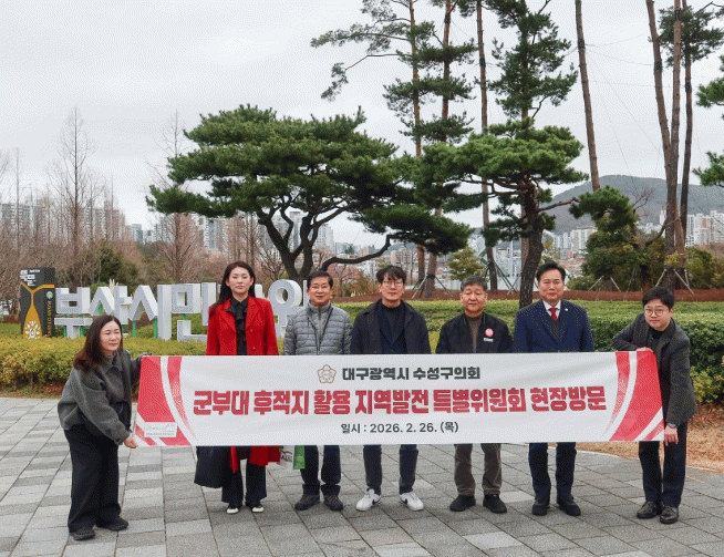 [´º½ºÅë ¾È»óµ· ±âÀÚ]´ë±¸ ¼ö¼º±¸ÀÇȸ ¡®±ººÎ´ë ÈÄÀûÁö Ȱ¿ë Áö¿ª¹ßÀü Ưº°À§¿øÈ¸¡¯°¡ ±ººÎ´ë ÀÌÀü¿¡ µû¸¥ ÈÄÀûÁö Ȱ¿ë ¹æÇâÀ» ¸ð»öÇϱâ À§ÇØ Áö³ 2¿ù 26ÀÏ ºÎ»ê½Ã¹Î°ø¿øÀ» ¹æ¹®Çß´Ù.