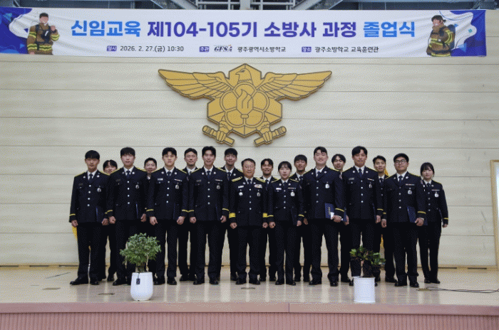 [´º½ºÅë ±è±¤¿ ±âÀÚ]±¤ÁÖ±¤¿ª½Ã ¼Ò¹æÇб³´Â 27ÀÏ ±³À°ÈƷðü¿¡¼ Á¦104¡¤105±â ½ÅÀÓ±³À° ¼Ò¹æ»ç °úÁ¤ Á¹¾÷½ÄÀ» °³ÃÖÇß´Ù.