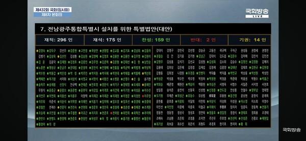 Àü³²±¤ÁÖÅëÇÕÆ¯º°¹ý ÅõÇ¥ °á°úÇ¥, [»çÁø=±¹È¸¹æ¼Û]