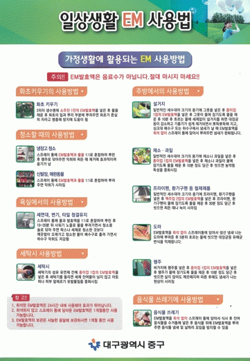 EM ¹è¾ç¾×Àº À¯ÀÍÇÑ ¹Ì»ý¹°À» Á¶ÇÕÇØ ¹è¾çÇÑ °ÍÀ¸·Î, Ç×»êÈ ¹°Áú »ý¼º¿¡ µû¸¥ ¾ÇÃëÁ¦°Å¿Í ¼öÁúÁ¤È µî¿¡ È¿°ú°¡ ÀÖ´Â °ÍÀ¸·Î ¾Ë·ÁÁ® ÀÖ´Ù. ½Ä¹° ºñ·á ´ë¿ë, ÁÖ¹æ ¹× »ýȰ°ø°£ ¾ÇÃëÁ¦°Å, ¼¼Å¹ º¸Á¶ µî ÀÏ»ó»ýȰ Àü¹Ý¿¡ Ȱ¿ëÇÒ ¼ö ÀÖÀ¸¸ç, ¿ëµµ¿¡ µû¶ó ¹°°ú Èñ¼®ÇØ »ç¿ëÇÏ¸é µÈ´Ù.