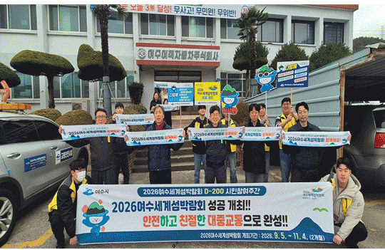 ¿©¼ö½Ã´Â 2026¿©¼ö¼¼°è¼¶¹Ú¶÷ȸ D-200ÀÏÀ» ¸Â¾Æ ¹ö½º¡¤Åýà ¿î¼öÁ¾»çÀÚµéÀ» ´ë»óÀ¸·Î º»°ÝÀûÀÎ È«º¸¿Í ºÕ¾÷ Ȱµ¿¿¡ ³ª¼¹´Ù.