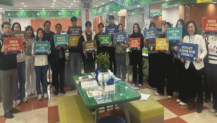 ¾Æ¿ï·¯ ÈÆ·Ã Âü°¡ÀÚ Àü¿øÀº ¹Î¿øÀÇ ½Å¼ÓÇÑ Ã³¸®¿Í Ä£ÀýÇÑ ¹Ì¼Ò·Î ºÀ»çÇϰڴٴ ¡®±¸·Ê±ºÃ» °ø¹«¿ø Ä£Àý ´ÙÁü °áÀÇ¡¯¸¦ ´ÙÁö´Â ½Ã°£µµ °¡Á³´Ù.