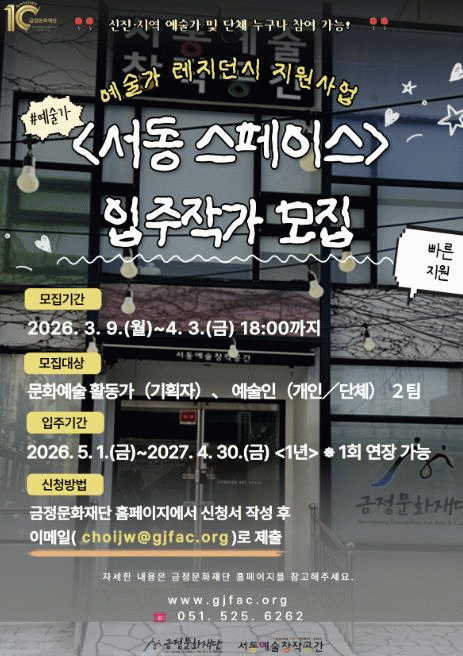 [´º½ºÅë °û¸íÈÆ ±âÀÚ]Àç´Ü¹ýÀÎ ±ÝÁ¤¹®ÈÀç´ÜÀº 2026 ¼µ¿¿¹¼úâÀÛ°ø°£ ·¹Áö´ø½Ã °ø°£ÀÎ '¼µ¿ ½ºÆäÀ̽º'ÀÇ ÀÔÁÖ ÀÛ°¡¸¦ ¿À´Â 3¿ù 9ÀϺÎÅÍ 4¿ù 3ÀϱîÁö ¸ðÁýÇÑ´Ù°í ¹àÇû´Ù.