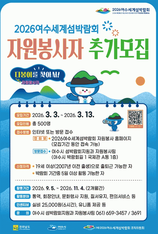 ¿©¼ö½Ã, 2026¿©¼ö¼¼°è¼¶¹Ú¶÷ȸ ÀÚ¿øºÀ»çÀÚ ¡°´ÙºÀÀÌ¡± Ãß°¡ ¸ðÁý
