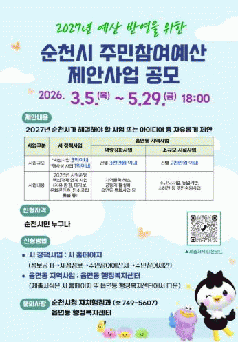 ¼øÃµ½Ã, 2027³â ¿¹»êÆí¼ºÀ» À§ÇÑ ÁÖ¹ÎÂü¿©¿¹»ê Á¦¾È Á¢¼ö