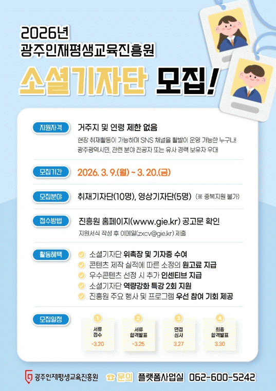 ±¤ÁÖÀÎÀçÆò»ý±³À°ÁøÈï¿ø, 2026 ¼Ò¼È±âÀÚ´Ü ¸ðÁý