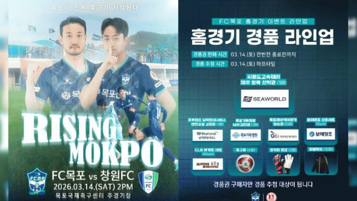 FC¸ñÆ÷´Â °³¸·ÀüÀÇ ¾Æ½¬¿òÀ» µÚ·ÎÇÏ°í ¿À´Â 3¿ù 14ÀÏ ¿ÀÈÄ 2½Ã ¸ñÆ÷±¹Á¦Ã౸¼¾ÅÍ¿¡¼ ¿¸®´Â â¿øFC¿ÍÀÇ K3¸®±× 2¶ó¿îµå Ȩ°æ±â¿¡¼ ½ÃÁð ù ½ÂÀ» ³ë¸°´Ù.