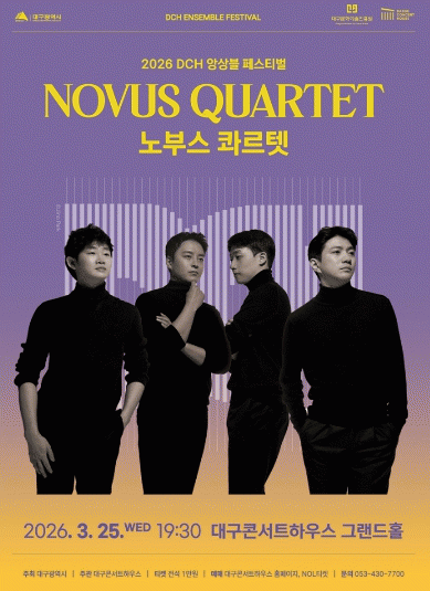 [´º½ºÅë ¾È»óµ· ±âÀÚ]´ë±¸ÄܼƮÇϿ콺(°üÀå ¹Úâ±Ù)°¡ ¼±º¸ÀÌ´Â ¡®2026 DCH ¾Ó»óºí Æä½ºÆ¼¹ú¡¯ÀÇ ´ë¹Ì¸¦ Àå½ÄÇÒ ÇÏÀ̶óÀÌÆ® ¹«´ë°¡ ã¾Æ¿Â´Ù. ¼¼°èÀûÀÎ Çö¾Ç»çÁßÁÖ´Ü ¡®³ëºÎ½º Ä⸣ÅÝ(Novus Quartet)¡¯ÀÇ °ø¿¬ÀÌ ¿À´Â 3¿ù 25ÀÏ ¿ÀÈÄ 7½Ã 30ºÐ ´ë±¸ÄܼƮÇϿ콺 ±×·£µåȦ¿¡¼ ¿¸°´Ù.