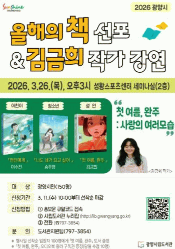 [´º½ºÅë ±è±¤¿ ±âÀÚ]±¤¾ç½Ã´Â ¿À´Â 3¿ù 26ÀÏ ¿ÀÈÄ 3½Ã ¼ºÈ²½ºÆ÷Ã÷¼¾ÅÍ ¼¼¹Ì³ª½Ç(2Ãþ)¿¡¼ ¡®2026 ±¤¾ç½Ã ¿ÃÇØÀÇ Ã¥ ¼±Æ÷½Ä ¹× ÀÛ°¡ ÃÊû °¿¬¡¯À» °³ÃÖÇÑ´Ù.