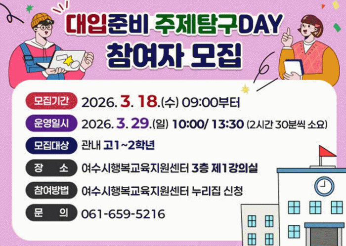 ¿©¼ö½Ã, °íµîÇлý ´ëÀÔ Áغñ ¡®ÁÖÁ¦Å½±¸DAY Ä·ÇÁ¡¯ °³ÃÖ