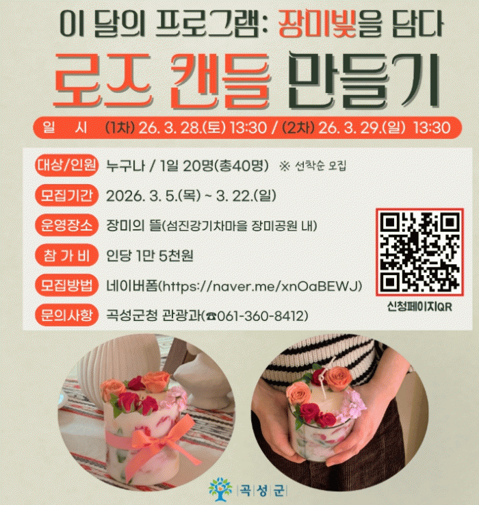 À̹ø ÇÁ·Î±×·¥Àº °î¼º ¼¶Áø°±âÂ÷¸¶À» Àå¹Ì°ø¿ø ³» ¡®Àå¹ÌÀÇ ¶ã¡¯¿¡¼ ÁøÇàµÇ´Â üÇèÇü °ü±¤ Çà»ç·Î, º½À» ¸Â¾Æ Àå¹ÌÀÇ Çâ±â¿Í °¨¼ºÀ» Á÷Á¢ ´ã¾Æº¼ ¼ö ÀÖµµ·Ï ¸¶·ÃµÆ´Ù.