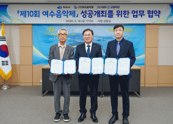 ¿©¼ö½Ã´Â 16ÀÏ ½Ãû »óȲ½Ç¿¡¼ (Àç)¿©¼öÀ½¾ÇÁ¦, (Àç)KBS±³Çâ¾Ç´Ü°ú ¡®Á¦10ȸ ¿©¼öÀ½¾ÇÁ¦¡¯ÀÇ ¼º°øÀûÀÎ °³ÃÖ¸¦ À§ÇÑ ¾÷¹«Çù¾à(MOU)À» ü°áÇß´Ù.