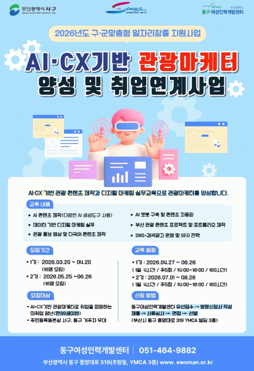 ºÎ»ê µ¿±¸¡¤¼±¸, AI¡¤CX ±â¹Ý °ü±¤¸¶ÄÉÅÍ ¾ç¼º ¹× Ãë¾÷ ¿¬°è »ç¾÷ ÃßÁø
