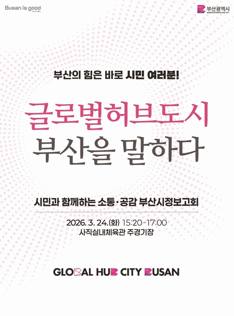 [´º½ºÅë °û¸íÈÆ ±âÀÚ] ºÎ»ê½Ã´Â ¿À´Â 24ÀÏ ¿ÀÈÄ 3½Ã 20ºÐ »çÁ÷½Ç³»Ã¼À°°ü ÁÖ°æ±âÀå¿¡¼ ½Ã¹Î°ú Áö¿ª ÁÖ¿ä ÀÎ»ç µîÀÌ Âü¼®ÇÑ °¡¿îµ¥ '±Û·Î¹úÇãºêµµ½Ã ºÎ»êÀ» ¸»ÇÏ´Ù' ½ÃÁ¤º¸°íȸ¸¦ °³ÃÖÇÑ´Ù°í ¹àÇû´Ù.