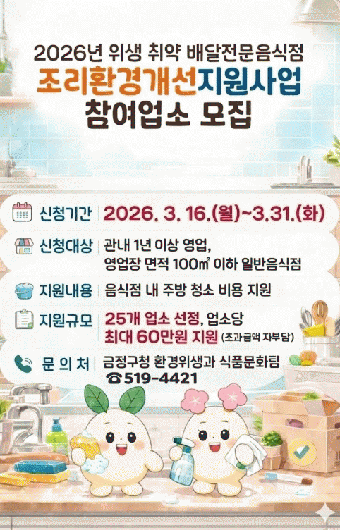 ºÎ»ê ±ÝÁ¤±¸, À§»ý Ãë¾à ¹è´ÞÀü¹®À½½ÄÁ¡ Á¶¸®È¯°æ°³¼± Áö¿ø»ç¾÷ ½Ç½Ã