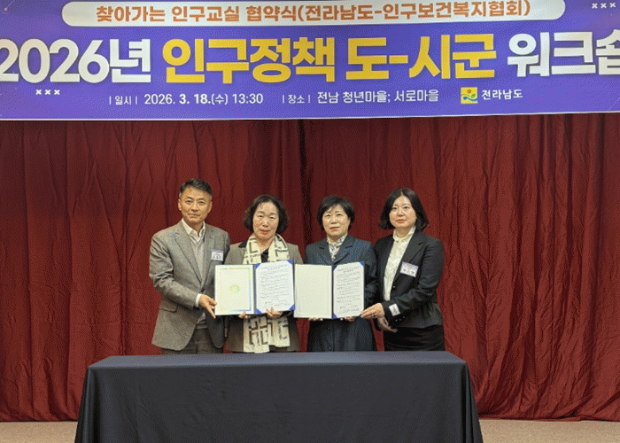 Àü³²µµ´Â 18ÀÏ ¡®¿µ±¤ ¼·Î¸¶À»(û³â¸¶À»)¡¯¿¡¼ µµ¡¤½Ã±º Àα¸Á¤Ã¥ ´ã´çÀÚ 60¿© ¸íÀÌ Âü¼®ÇÑ °¡¿îµ¥ ¡®2026³â Àα¸Á¤Ã¥ µµ-½Ã±º ¿öÅ©¼ó¡¯À» °³ÃÖÇϰí ÅëÇÕÆ¯º°½Ã ½Ã´ë¿¡ °É¸ÂÀº »õ·Î¿î Àα¸Á¤Ã¥ÀÇ ÀÌÁ¤Ç¥¸¦ Á¦½ÃÇß´Ù.