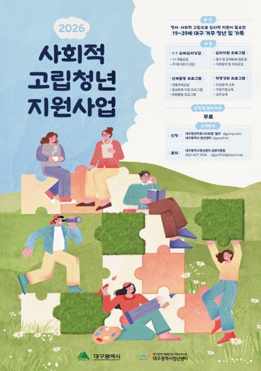 [´º½ºÅë ¾È»óµ· ±âÀÚ] ´ë±¸±¤¿ª½Ã´Â ½É¸®Àû¡¤Á¤¼Àû ¾î·Á¿òÀ¸·Î »çȸ¿Í ´ÜÀýµÈ °í¸³ û³âµéÀÌ °Ç°ÇÑ ÀÏ»óÀ» µÇã°í ¼º°øÀûÀ¸·Î »çȸ¿¡ º¹±ÍÇÒ ¼ö ÀÖµµ·Ï ¡®2026³â »çȸÀû °í¸³Ã»³â Áö¿ø»ç¾÷¡¯À» º»°Ý ÃßÁøÇÑ´Ù.