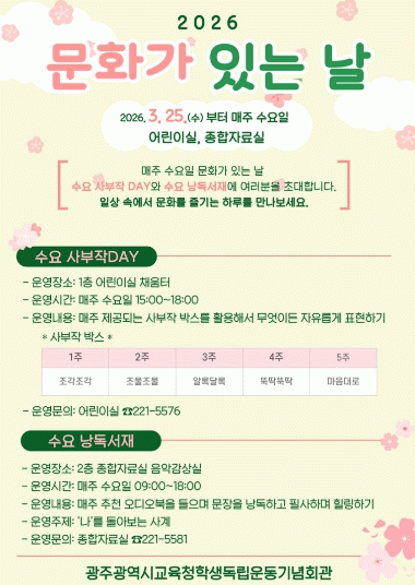 [Æ÷½ºÅÍ] ±¤ÁÖ Çлýµ¶¸³¿îµ¿±â³äȸ°ü, ¡®¹®È°¡ ÀÖ´Â ³¯¡¯ ¿î¿µ