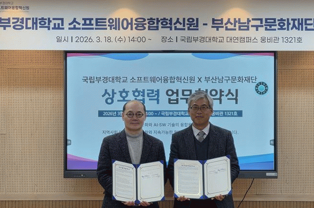 [´º½ºÅë °û¸íÈÆ ±âÀÚ]ºÎ»ê³²±¸¹®ÈÀç´Ü°ú ±¹¸³ºÎ°æ´ëÇб³ ¼ÒÇÁÆ®¿þ¾îÀ¶ÇÕÇõ½Å¿øÀº Áö¿ª»çȸ ±â¹ÝÀÇ ¹®È¡¤¿¹¼ú¡¤±â¼ú À¶ÇÕ ÇÁ·ÎÁ§Æ®¸¦ °øµ¿ ÃßÁøÇϰí, µðÁöÅÐ ¿ª·® °È¸¦ À§ÇÑ ÀΰøÁö´É(AI)¡¤¼ÒÇÁÆ®¿þ¾î(SW) ±³À° Á¦°ø µî Áö¼Ó °¡´ÉÇÑ Çù·Â ¸ðµ¨À» ±¸ÃàÇϱâ À§ÇØ ¾÷¹«Çù¾à(MOU)À» ü°áÇß´Ù.