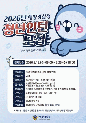 û³âÀÎÅÏ ¸ðÁýÀº û³âµéÀÇ »çȸ ÁøÃâÀ» Áö¿øÇÏ°í °øÁ÷ °æÇè ±âȸ¸¦ Á¦°øÇϱâ À§ÇØ ÃßÁøµÇ¸ç, ¼ÇØÁö¹æÇØ¾ç°æÂûû °ü³»¿¡¼ ÃÑ 37¸íÀÇ Ã»³âÀÎÅÏÀ» ä¿ëÇÏ´Â °¡¿îµ¥ ¿ÏµµÇذ濡¼´Â 6¸íÀ» ¼±¹ßÇÒ ¿¹Á¤ÀÌ´Ù.