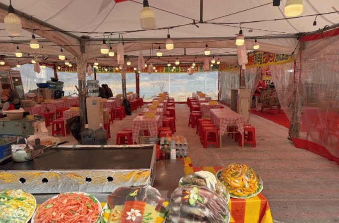 ÃàÁ¦Àå ³»ºÎ ¸Ô°Å¸® ºÎ½º¿¡´Â ±è±¹ ÇÑ»óÂ÷¸², ±¤¾çºÒ°í±â±è¹ä, ±¤¾ç¸Å½ÇÇÑ¿ì¹ö°Å, ºÒ°í±â´ã¾Æ±¤¾çµµ½Ã¶ô ½ÃÁð2, ±¤¾çÅäÁ¾´ß²¿Ä¡, ¸ÅÈ¡¤¸Å½Ç µðÀúÆ® µî ±¤¾çÀÇ Æ¯»öÀ» »ì¸° ´Ù¾çÇÑ À½½ÄÀÌ ¸¶·ÃµÅ ÀÖÀ¸¸ç, Áö¿ª ½ÄÀç·á¿Í ¸ÅÈ¡¤¸Å½ÇÀ» Ȱ¿ëÇÑ ¸Þ´ºµµ ÇÔ²² ±¸¼ºµÅ ÀÖ´Ù.