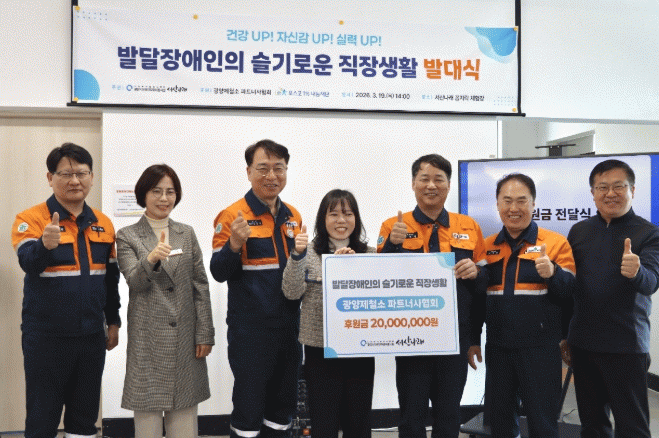 À̹ø »ç¾÷Àº ±¤¾çÁ¦Ã¶¼Ò ÆÄÆ®³Ê»çÇùȸ(ȸÀå ±èÀ±Ã¶)ÀÇ ÈÄ¿øÀ¸·Î ÃßÁøµÇ¸ç, ¼»ê³ª·¡ ¼Ò¼Ó ¹ß´ÞÀå¾ÖÀÎ ±Ù·ÎÀÚ 22¸íÀ» ´ë»óÀ¸·Î °Ç°ÇÑ Á÷Àå»ýȰ°ú Áö¼ÓÀûÀÎ ±Ù·ÎȰµ¿À» Áö¿øÇϱâ À§ÇØ ÈÄ¿ø±Ý 2õ¸¸ ¿øÀÌ Àü´ÞµÆ´Ù.