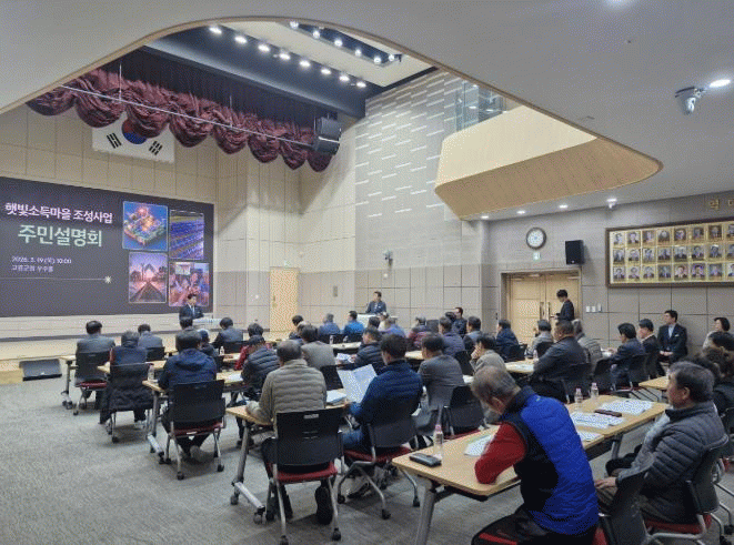 [´º½ºÅë ±è±¤¿ ±âÀÚ]°íÈﱺÀº Áö³ 19ÀÏ ±ºÃ» ¿ìÁÖȦ¿¡¼ ÇÞºû¼Òµæ¸¶À» Á¶¼ºÀ» Èñ¸ÁÇÏ´Â ¸¶À» ÀÌÀå°ú ÁֹΠ80¿© ¸íÀÌ Âü¼®ÇÑ °¡¿îµ¥ ¡®ÇÞºû¼Òµæ¸¶À» Á¶¼º »ç¾÷¡¯ ÁֹΠ¼³¸íȸ¸¦ °³ÃÖÇß´Ù°í ¹àÇû´Ù.