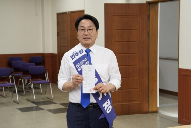 [´º½ºÅë - ±è±¤¿ ±âÀÚ ] °±âÁ¤ ±¤ÁÖ±¤¿ª½ÃÀåÀÌ 20ÀÏ ¿ÀÈÄ Àü³²±¤ÁÖÅëÇÕÆ¯º°½ÃÀå ¼±°Å Ã⸶¸¦ À§ÇØ ¿¹ºñÈĺ¸ µî·ÏÀ» ¸¶Ä¡°í º»°ÝÀûÀÎ ¼±°Å üÁ¦¿¡ µ¹ÀÔÇß´Ù.