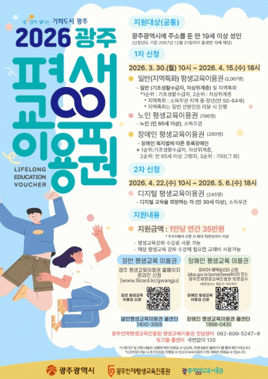 [´º½ºÅë ±è±¤¿ ±âÀÚ]±¤ÁÖ±¤¿ª½Ã´Â Àú¼ÒµæÃþ°ú Àå¾ÖÀÎ, ³ëÀÎ, µðÁöÅÐ ¼Ò¿Ü°èÃþÀÇ Æò»ýÇнÀ ±âȸ¸¦ È®´ëÇϱâ À§ÇØ ¡®2026³â Æò»ý±³À°ÀÌ¿ë±Ç Áö¿ø»ç¾÷¡¯À» ½ÃÇàÇÑ´Ù.