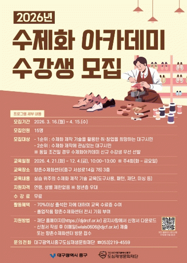 [´º½ºÅë ¾È»óµ· ±âÀÚ]´ë±¸ Áß±¸´Â ¿À´Â 4¿ù 15ÀϱîÁö ¼öÁ¦È »ê¾÷ Àü¹® Àη ¾ç¼ºÀ» À§ÇÑ ¡®2026³â ¼öÁ¦È ¾ÆÄ«µ¥¹Ì¡¯ ¼ö°»ýÀ» ¸ðÁýÇÑ´Ù.