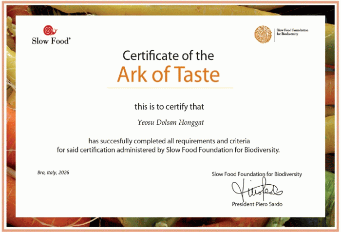 [´º½ºÅë ±è±¤¿ ±âÀÚ] ¿©¼ö½Ã´Â Áö³ 18ÀÏ Áö¿ª ´ëÇ¥ ³ó»ê¹°ÀÎ µ¹»ê È«°«, °Å¹®µµ ÇØÇ³¾¦, ¼¶ ¹æÇ³ÀÌ ±¹Á¦½½·ÎǪµåÇùȸÀÇ ¼¼°è ½Ä¹®ÈÀ¯»ê º¸È£ ÇÁ·ÎÁ§Æ®ÀÎ ¡®¸ÀÀÇ ¹æÁÖ(Ark of Taste)¡¯¿¡ µîÀçµÆ´Ù°í ¹àÇû´Ù.
