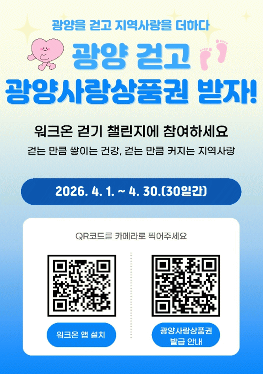 [´º½ºÅë ±è±¤¿ ±âÀÚ] ±¤¾ç½Ã°¡ ¿À´Â 4¿ùºÎÅÍ ½Ã¹Î °Ç° ÁõÁø°ú Áö¿ª°æÁ¦ Ȱ¼ºÈ¸¦ À§ÇØ ¸ð¹ÙÀÏ °È±â ¾Û ¡®¿öÅ©¿Â¡¯ °È±â 縰Áö º¸»óÀ» ±âÁ¸ ¸ð¹ÙÀÏ »óǰ±Ç¿¡¼ ±¤¾ç»ç¶û»óǰ±ÇÀ¸·Î º¯°æÇØ Áö±ÞÇÑ´Ù°í ¹àÇû´Ù.