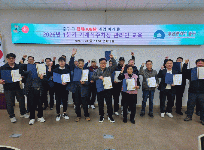 [´º½ºÅë °û¸íÈÆ ±âÀÚ] ºÎ»ê Áß±¸´Â Áö³ 20ÀÏ ¡®2026³â Áß±¸ ±× Àâä(JOBóõ) Ãë¾÷¾ÆÄ«µ¥¹Ì ±â°è½ÄÁÖÂ÷Àå °ü¸®ÀÎ ±³À°¡¯ 1ºÐ±â(½Å±Ô) ±³À° °úÁ¤¿¡¼ 19¸íÀÇ ¼ö·á»ýÀ» ¹èÃâÇß´Ù.
