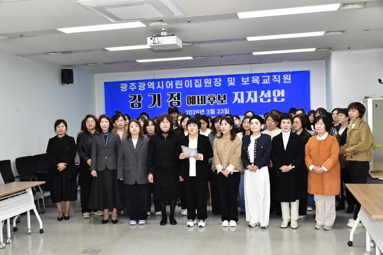 ±¤ÁÖ±¤¿ª½Ã¾î¸°ÀÌÁý¿¬ÇÕȸ¸¦ ºñ·ÔÇÑ Áö¿ª ³» º¸À° °ü·Ã ´Üü¿Í º¸À°±³Á÷¿ø 5,648¸íÀº 23ÀÏ ÁöÁö¼±¾ð¹®À» ¹ßÇ¥ÇÏ°í ¡°°±âÁ¤ È帴 ±×µ¿¾È º¸À° ÇöÀåÀÇ º¯È¸¦ À̲ø¾î¿Â Ã¥ÀÓ ÀÖ´Â ¸®´õ¡±¶ó¸ç ¡°ÅëÇÕÆ¯º°½ÃÀåÀ¸·Î¼ ´õ Å« ¿ªÇÒÀ» ¼öÇàÇÒ ÀûÀÓÀÚ¡±¶ó°í ¹àÇû´Ù.