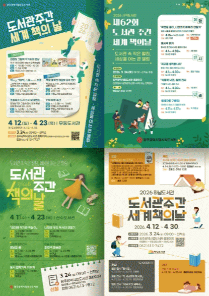 [´º½ºÅë ±è±¤¿ ±âÀÚ]±¤ÁÖ±¤¿ª½Ã ½Ã¸³µµ¼°ü(¹«µî¡¤»çÁ÷¡¤»ê¼ö¡¤Çϳ²)Àº ¡®µµ¼°ü ÁÖ°£¡¯(4¿ù 12¡18ÀÏ)°ú ¡®¼¼°è Ã¥ÀÇ ³¯¡¯(4¿ù 23ÀÏ)À» ¸Â¾Æ ´Ù¾çÇÑ µ¶¼¹®È Çà»ç¸¦ ¸¶·Ã, 3¿ù 24ÀϺÎÅÍ Âü°¡ ½ÅûÀ» ¹Þ´Â´Ù.